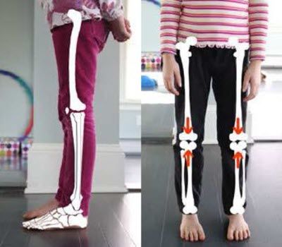 The way we stand impacts on our knees. A vertical leg loads the knee evenly in all directions as shown in the photograph. Ideally we should stand with our feet pointing forward and aligned on the outside edge. The ridge of the hip bone should stack directly above the knees and the knees should stack directly above the hip joint. Most importantly the weight is in the heels.